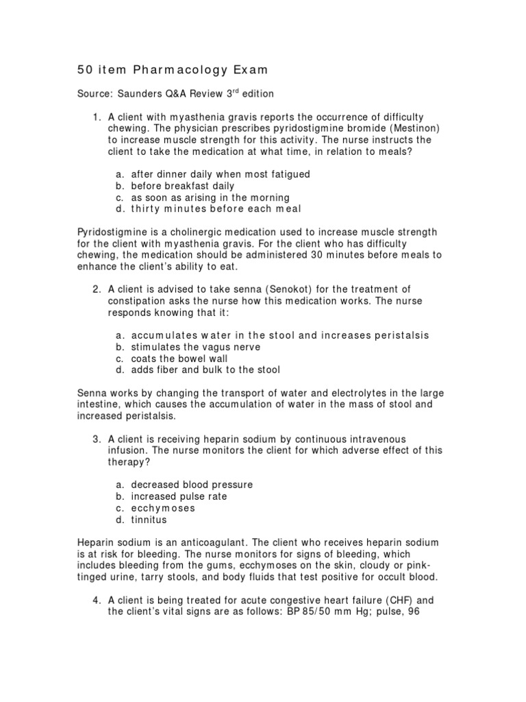 50 Item Pharmacology Exam With Answers And Rationale Pdf Nausea Adverse Effect